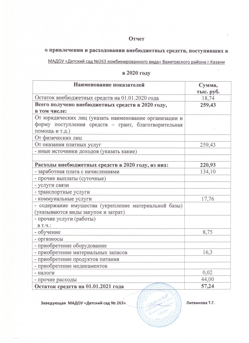 Отчёт о расходовании внебюджетных средств за 2020