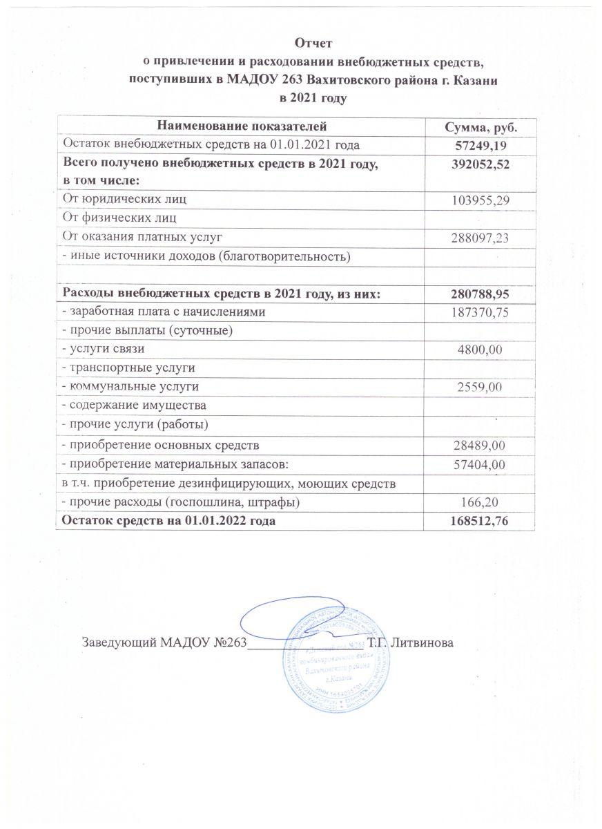 Отчёт о привлечении и расходовании внебюджетных средств за 2021год