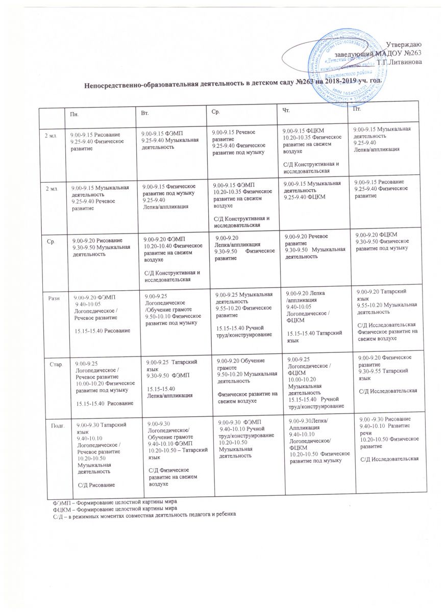 Непосредственно-образовательная деятельность на 2018-2019 учебный год.