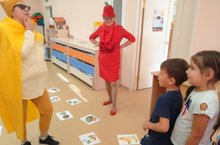 Җиләк-җимешләр һәм яшелчәләр темасын кабатлау өчен бик кызыклы уен үткәрдек. Лимонстр һәм Помидора балаларны кызыклы мавыктыргыч викторинага чакырдылар. Ярышу, бию, табышмаклар чишү - барысы да күңелле булды.