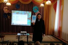 Состоялась встреча с детским татарским писателем и корреспондентом газеты "Шахри Казань" Йолдыз Адиповной, которая познакомила ребят и взрослых со своими стихами написанными на двух языках (татарском и русском). Показала свои книги с красочными иллюстрациями.