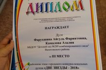 В районном этапе городского конкурса вокальных дуэтов "Две звезды-2018" наша воспитанница Камалова Азалия, и Фарухшина Айгуль Фариятовна заняли
