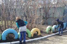 С большим энтузиазмом сотрудники нашего детского сада вышли сегодня на традиционный субботник. Мусор убрали, деревья побелили, подкрасили фасад здания, потрудились на славу!