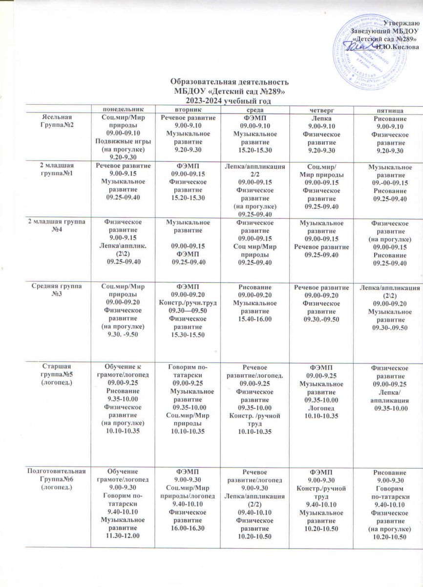 Образовательная деятельность на 2023-2024 учебный год (главное здание)
