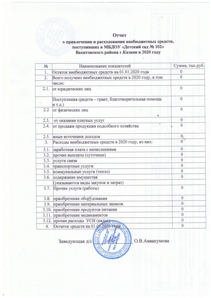 Отчет о привлечении и расходовании внебюджетных средств за 2020 год
