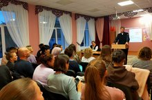 28 сентября 2022 года в детском саду прошло общее родительское собрание на тему: "Как хорошо у нас в саду!" с участием старшего инспектора (по пропаганде БДД) ОП БДД ОГИБДД УМВД России по городу Казани капитана полиции Гилмутдинова Ленара Камилевича, который ознакомил родителей с правилами поведения на дороге «Воспитываем грамотного пешехода».