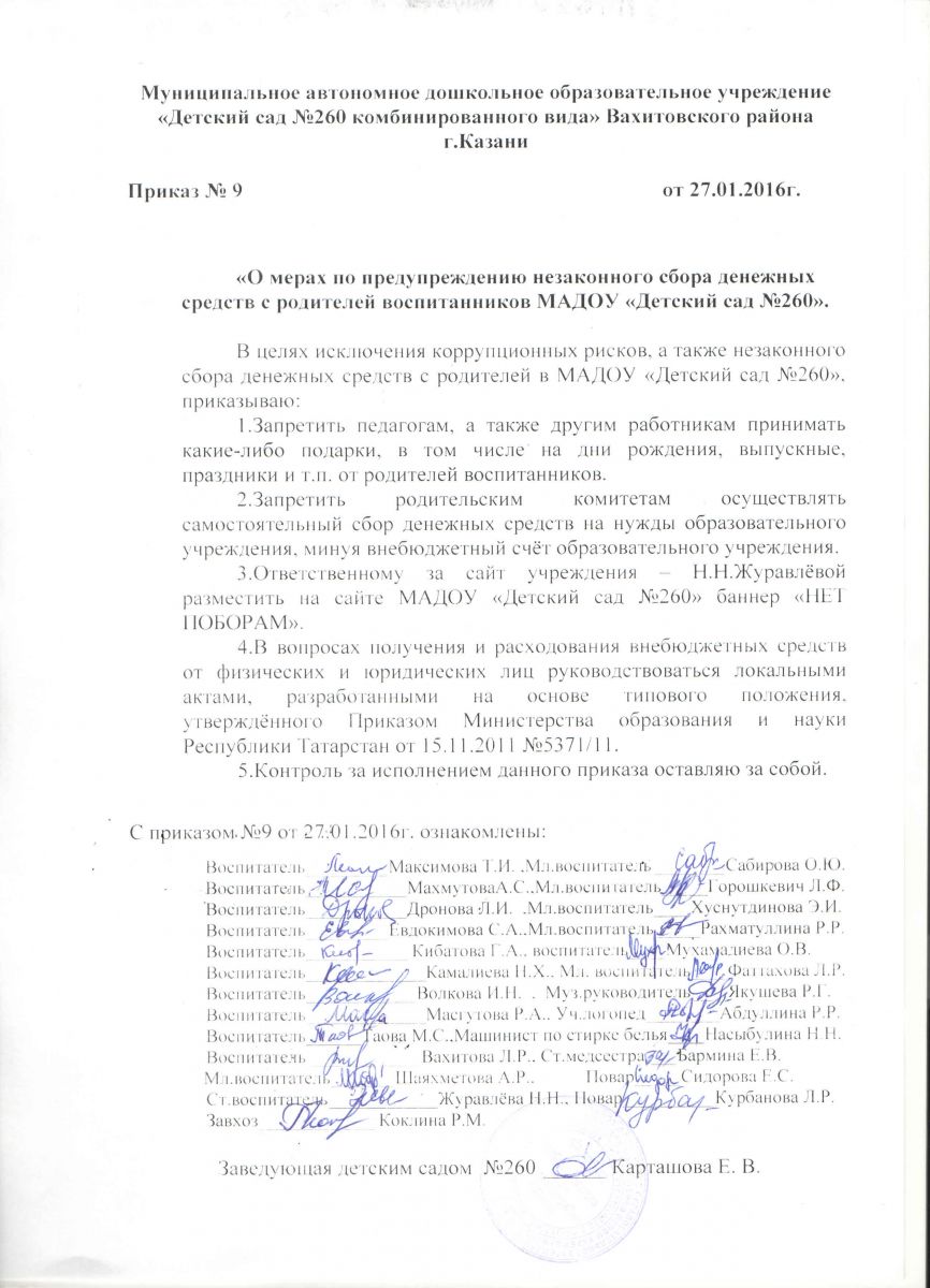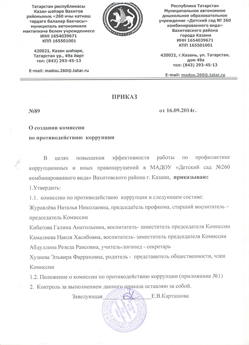 ПРИКАЗ «Об организации антикоррупционной деятельности В МАДОУ «Детский сад №260» на 2023 год»