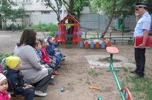 Инспектор провел беседу с дошкольниками, дети активно отвечали на вопросы инспектора.