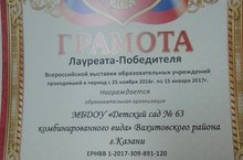По итогам мероприятия «Всероссийская выставка-форум образовательных организаций» (25 ноября 2016 г. - по 15 января 2017 г.) наш детский сад вошел в число лауреатов – победителей.