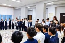 Cегодня прошла церемония поднятия флагов и исполнения гимнов РФ и РТ. На церемонии присутствовали 2 классы.
