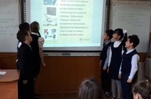 10 октября на базе школы прошла республиканская стажировка учителей физики и математики по теме «Проектная деятельность учащихся как базовая образовательная технология в условиях реализации ФГОС ООО», в ходе которой прошли открытые уроки в 1, 3, 4, 5, 6, 10 классах, учителя школы поделились опытом работы по организации проектной деятельности. Отличительной особенностью ФГОС является его деятельностный характер, ставящий главной целью - развитие личности школьника. В школе формируется умение учиться, способность к организации своей деятельности: умение принимать, сохранять цели, следовать им в учебной деятельности, планировать свою деятельность, осуществлять ее контроль и оценку, взаимодействовать с педагогом и сверстниками в учебном процессе.