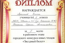 Поздравляем наших призеров районного этапа городского конкурса юных чтецов "Звездный билет, проводимого в рамках республиканского конкурса "Живая классика", Артемьева Романа, ученика 5А класса и педагога дополнительного образования Росихину Ирину Анатольевну!!!