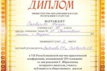 Призер VII Республиканской научно-практической конференции, посвященной 129 годовщине со дня рождения Г.Ибрагимова 19.03.2016