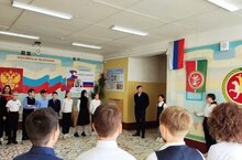 Традиционно неделя началась с церемонии поднятия флагов и исполнения гимнов РФ и РТ. На церемонии присутствовали учащиеся 5 классов.