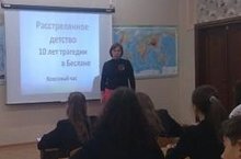 Сегодня во всех классах прошел единый классный час "10 лет трагедии в Беслане". Ребята до глубины души были тронуты фильмом "Расстреляное детство".