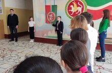 Неделя началась и поднятия флагов и исполнения гимнов РФ и РТ. На церемонии присутствовали учащиеся 3 классов.