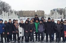 Учащиеся 9 классов в парке культуры и отдыха «Черное озеро» на торжественной церемонии открытия городского этапа Всероссийских соревнований юных хоккеистов клуба "Золотая шайба" имени А.В.Тарасова с участием Мэра г.Казани И.Р.Метшина.