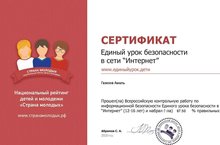 Учащиеся 10А класса приняли участие во Всероссийской контрольной работе по информационной безопасности в сети " Интернет" на сайте Единого урока. В тесте представлены вопросы, включающие основные аспекты информационной безопасности. По окончанию теста каждый участник получил сертификат о прохождении теста и участии в Едином уроке. Все учащиеся показали отличные результаты.