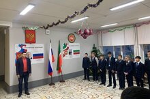 Cегодня прошла церемония поднятия флагов и исполнения гимнов РФ и РТ. На церемонии присутствовали 5 классы.