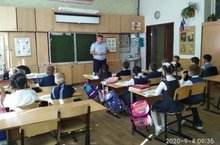 4 сентября капитан отдела дорожного надзора ГИБДД г. Казани Егоренков А.А. провел беседу с учащимися 1 классов на тему «Правила безопасного поведения на дорогах».