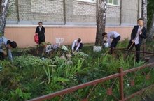 9 сентября учащиеся школы приняли участие в акции «Образцовый школьный двор». Они убирали территорию школьного двора, облагораживали клумбы.
