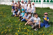 Как ковёр лужайка вся в цветочках ярких. Это одуванчики в мае расцвели. Тянут прямо к солнышку жёлтые панамки – Любят одуванчики солнечные дни.