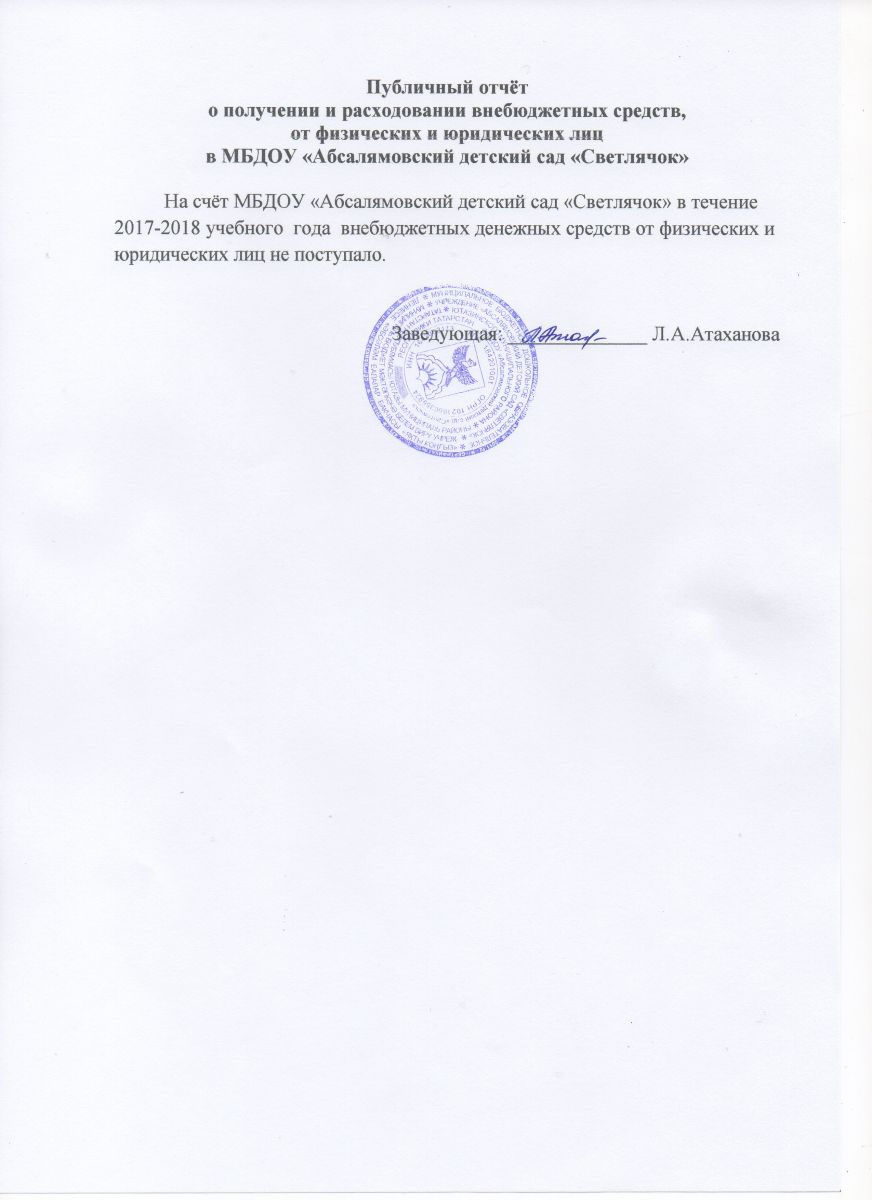 Публичный отчет о получении и расходовании внебюджетных средств, от физических и юридических лиц 2017-2018