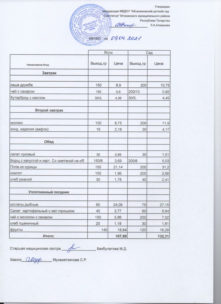 Меню на 09.04.2021 г.