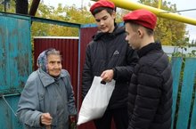 В рамках декады пожилых людей юнармейцы 9 класса посетили ветерана труда Уркия Мукасимовну и вручили ей подарки