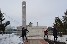 Отряд Юнармейцев организовали субботник у обелиска.