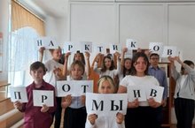 Отряд волонтеров нашей школы на школьной линейке провели акцию "Мы против наркотиков!"