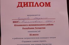 В районном патриотического конкурсе чтецов "Гордимся славою героев" посвещенною дню героев Отечества ученица 3-го класса Гумерова Марьям МБОУ "Абсалямовская ООШ" заняла III место. Молодеө!Поздравляем!