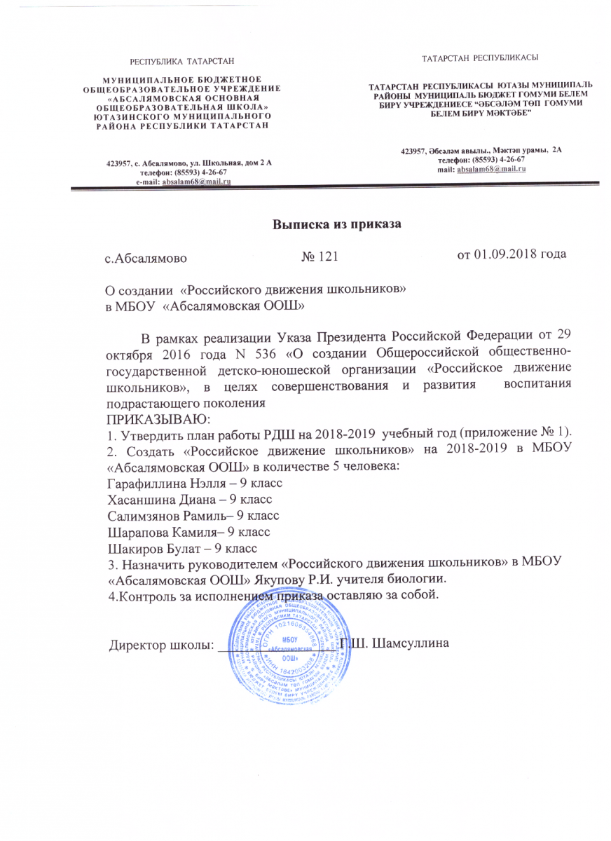 приказ о создании РДШ на 2018-2019 учебный год\