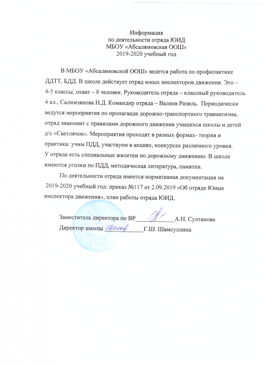 отчёт работы отряда "ЮИД" на 2020-2021 учебный год