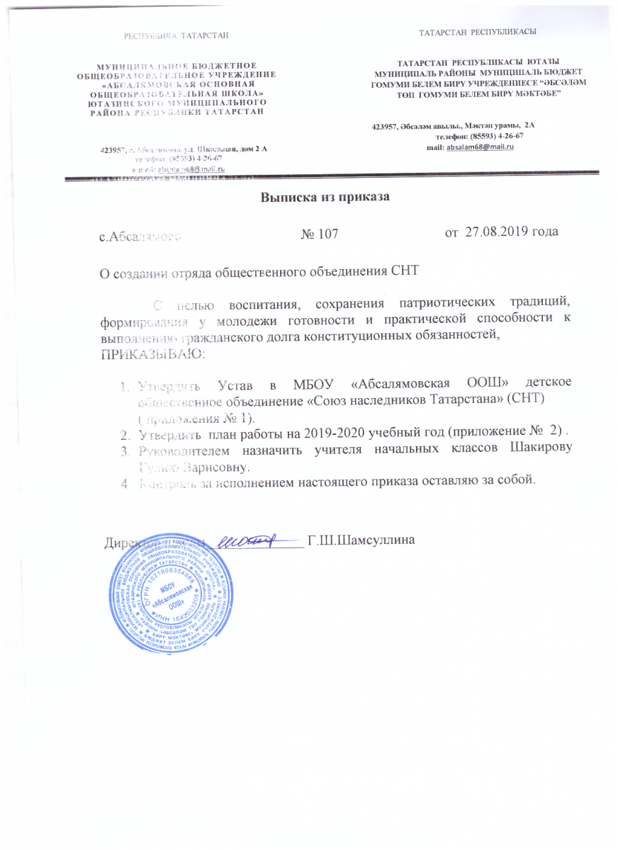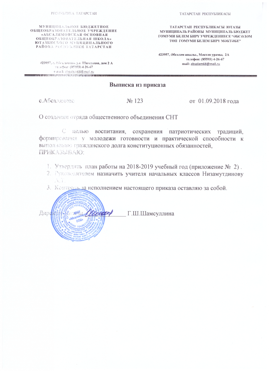 Муниципальное бюджетное общеобразовательное учреждение "Абсалямовская основная общеобразовательная школа" Ютазинского муниципального района Республики Татарстан/ Татарстан Республикасы Ютазы муниципаль районы муниципаль бюджет гомуми белем бирү учреждениесе “ Әбсәләм төп гомуми белем бирү мәктәбе”