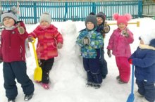 Сегодня воспитанники детского сада во время прогулки сделали снеговиков.
