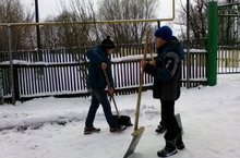 В целях очистки территории от снежных заносов и подготовки к строительству Снежного городка учащимися школы была очищена прилегающая территория.
