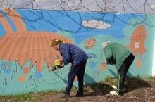 Мәктәп хезмәткәрләре Урыссу бистәсенең дивар рәсемнәрен яңартуда катнаштылар.