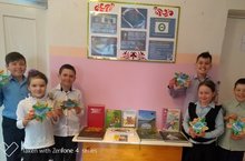 2,4 сыйныф укучылары китапханәче Гыйбадуллина Г. Н.җитәкчелегендә Ю. Гагаринның космоска очуына 60 ел тулуга багышланган "Космос балалар күзлегеннән" дип исемләнгән күләмле панно әзерләделәр.