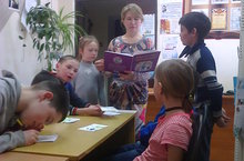 12 марта в сельской библиотеке в рамках внеурочной деятельности Камаева Г.Р. провела очередное занятие кружка занимательного чтения. Целью занятия было максимально понять содержание текста на татарском языке. Для этого детям было предложено перевести отдельные слова и словосочетания из текста на русский язык. Затем попытались представить сюжетную линию рассказа. Дети определили время событий, главных героев, концовку. После этих этапов начали читать и переводить предложения. Смогли определить название рассказа и даже нарисовали главных героев рассказа Ф.Хусни «Наил белән солдат»