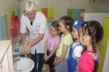 Дежурная группа сформирована по разновозрастному принципу. При этом в начале дня у детей, пришедших в группы, будет проводиться измерение температуры тела, а помещения будут также регулярно дезинфицироваться.