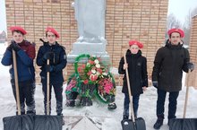 Юнармейцы Байрякинской СОШ, под руководством Латыпова М.М очистили от снега территорию около памятника погибшим воинам в годы Великой Отечественной войны. Несмотря на мороз и порывистый ветер, школьники упорно сражались с белоснежными сугробами. Через несколько минут территория около памятника героям-землякам была расчищена.