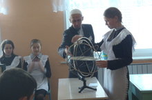 Следующей частью семинарского занятия является проведение открытого внеклассного мероприятия, где участвовали ученики 7-го и 10-го классов. Ученики демонстрировали физический эксперимент, относящийся к разным разделам физики. Для эксперимента были использованы гальванометр, микрогальванометр, термостолбик, осциллограф школьный, динамический громкоговоритель, обмотки из медной проволоки, дуговой и прямой постоянные магниты, модель небесной сферы, модель ветряной электростанции, Сегнерово колесо, усовершенствованный поплавок Декарта, модель «водомерки», модели духовых музыкальных инструментов, программируемый микрокалькулятор «Электроника МК-56», кодоскоп, радиометр Крукса. Эксперименты, проведённые с применением этого оборудования произвели хорошее впечатление на участников семинара.