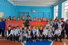 По завершению мероприятия, майор, председатель Абдуллин С. Г. от имени советских офицеров вручил школе флаг -копию «Знамени Победы». -