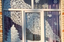 Новый год-время волшебства, а главное чудо для детишек мы создаем, наряжая свой дом.Великолепный зимний пейзаж из бумаги украсили наши окна.