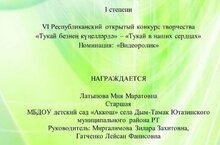Наши воспитанники Латыпова М, Миннуллин Х участвовали в Республиканском конкурсе творчества "Тукай в наших сердцах" и были награждены дипломами 1 степени, молодцы!