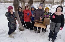 1 нче сыйныф укучылары "Кышын кошларны ашат"акциясендә катнашалар.