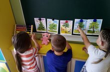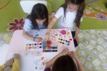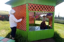 Әти-әниләр ярдәме белән комлыкны матур итеп буяп бирделәр.