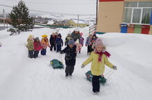 Тышта балалар белән бергәләп чаналар белән ярыш үткәрдек