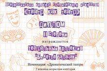 «Бәхетле балачак» театр коллективы Бөтенроссия сәхнә сәнгате конкурсында катнашты һәм «Драма театры» номинациясендә 2 нче дәрәҗәдәге диплом белән бүләкләнде. Җитәкче: Нагимова И.С. Котлыйбыз һәм иҗади уңышлар телибез!